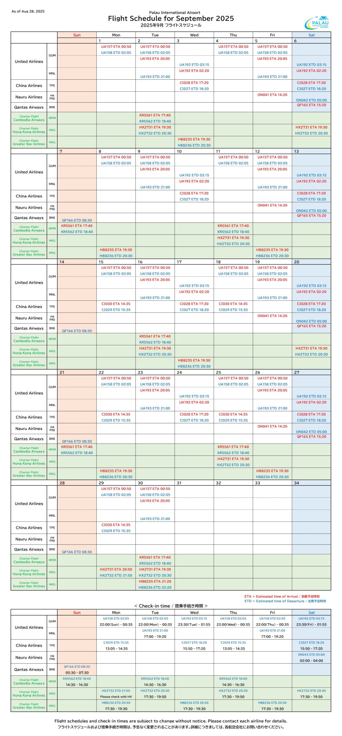 Monthly Flight Schedules: